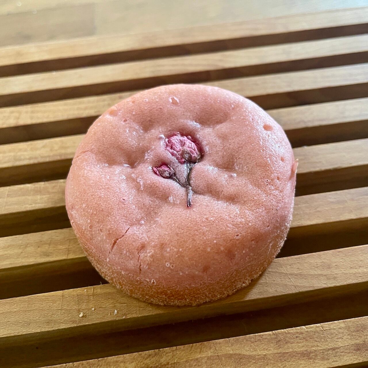 グルテンフリー米粉パンに自家製桜あんが入っています。